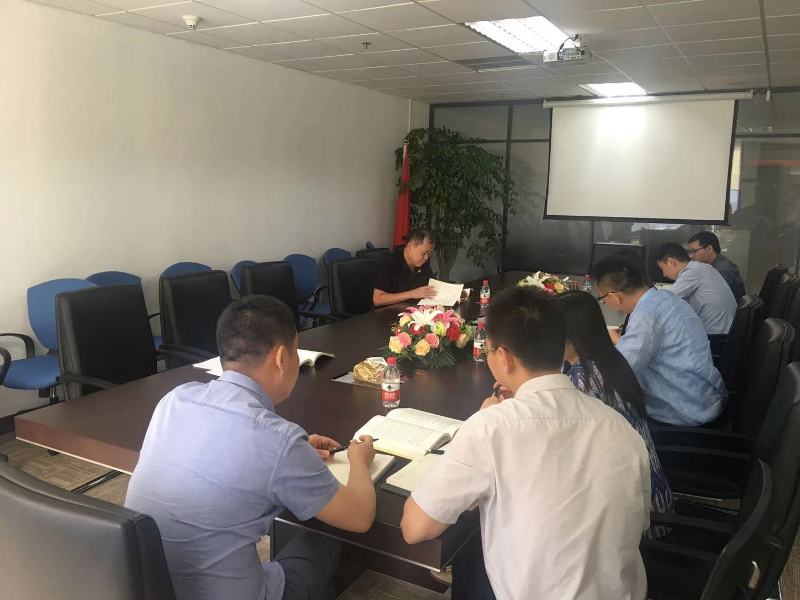 2019年8月6日下午,睿銀盛嘉黨支部全體黨員在公司大會議室參加了三季度黨員民主生活會。會議由睿銀盛嘉黨支部書記李甫同志主持,會上大家一起學習了《習近平新時代中國特色社會主義思想學習綱要》的相關內(nèi)容,并結合各自的工作實際進行了溝通討論。
